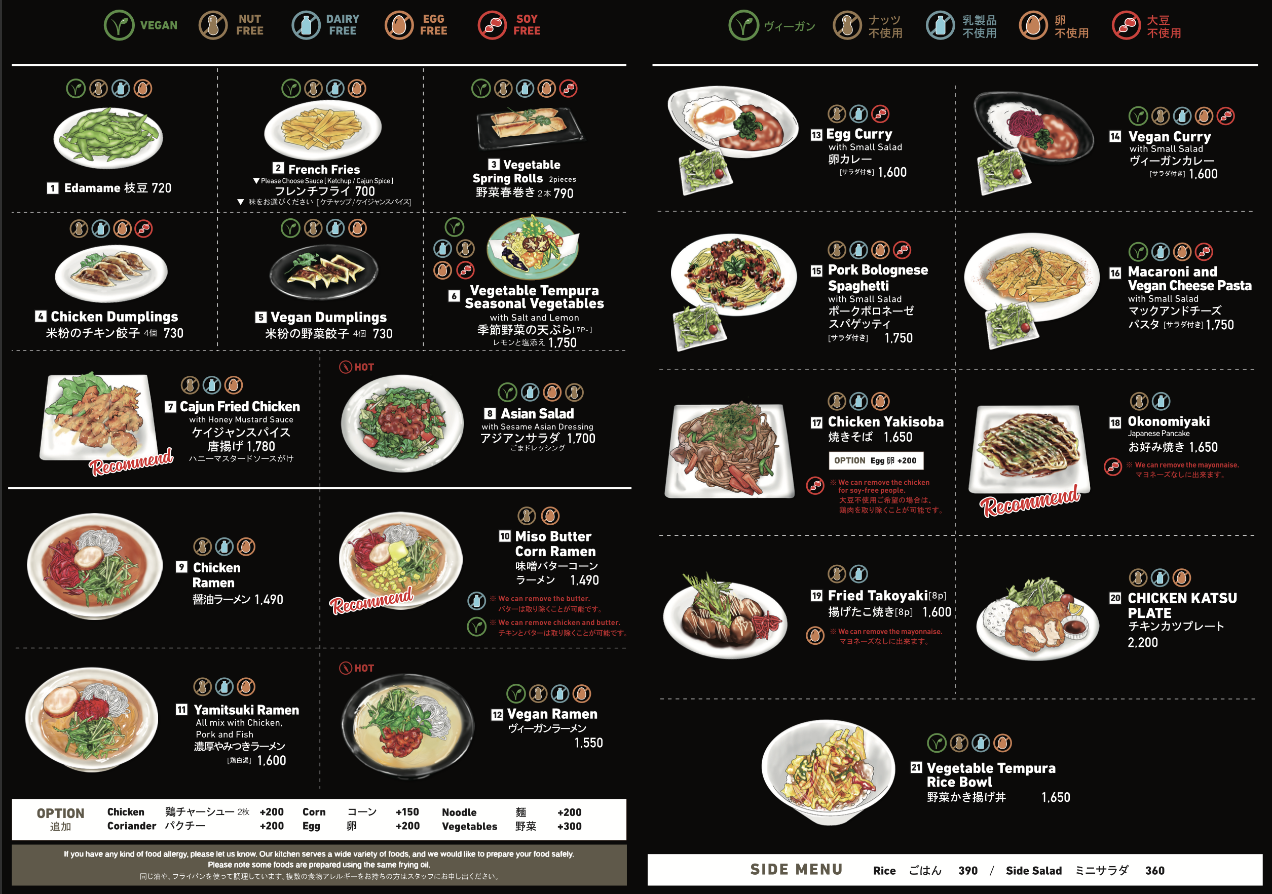 We are a gluten free restaurant. Our restaurant offers dishes and drinks that do not use wheat, barley, rye, or no msg. We try to accommodate all food allergies, including nut, egg, dairy, soy, shellfish, etc,as much as possible, but due to limited kitchen space, we cannot guarantee all meals. Please use your own judgment.